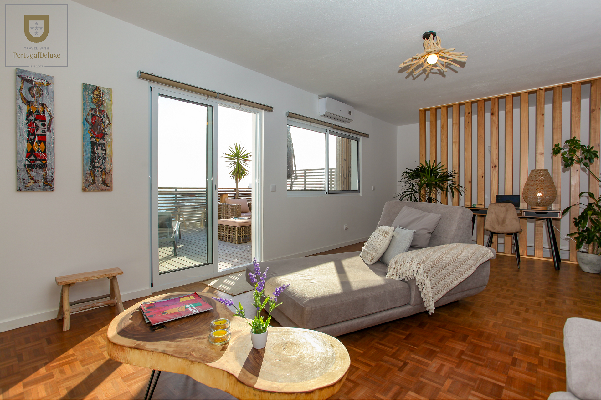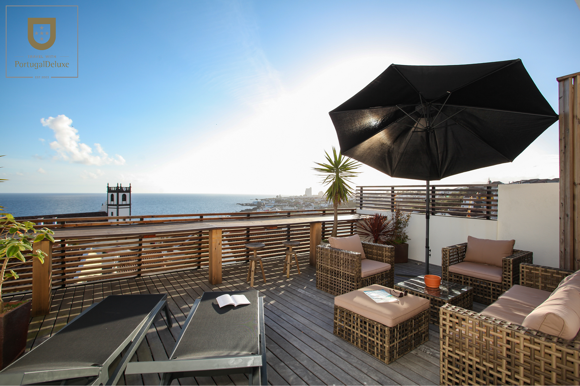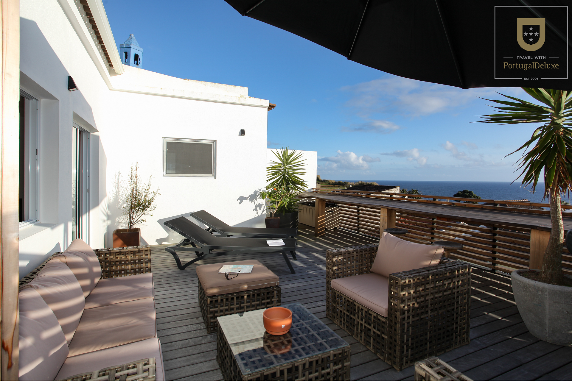 Características principais: terraço privado com zona de estar; 2 quartos (um com cama queen e outro com camas individuais); cozinha totalmente equipada; 2 salas de estar; lavandaria; café / bar local, piscinas naturais e miradouros nas proximidades.