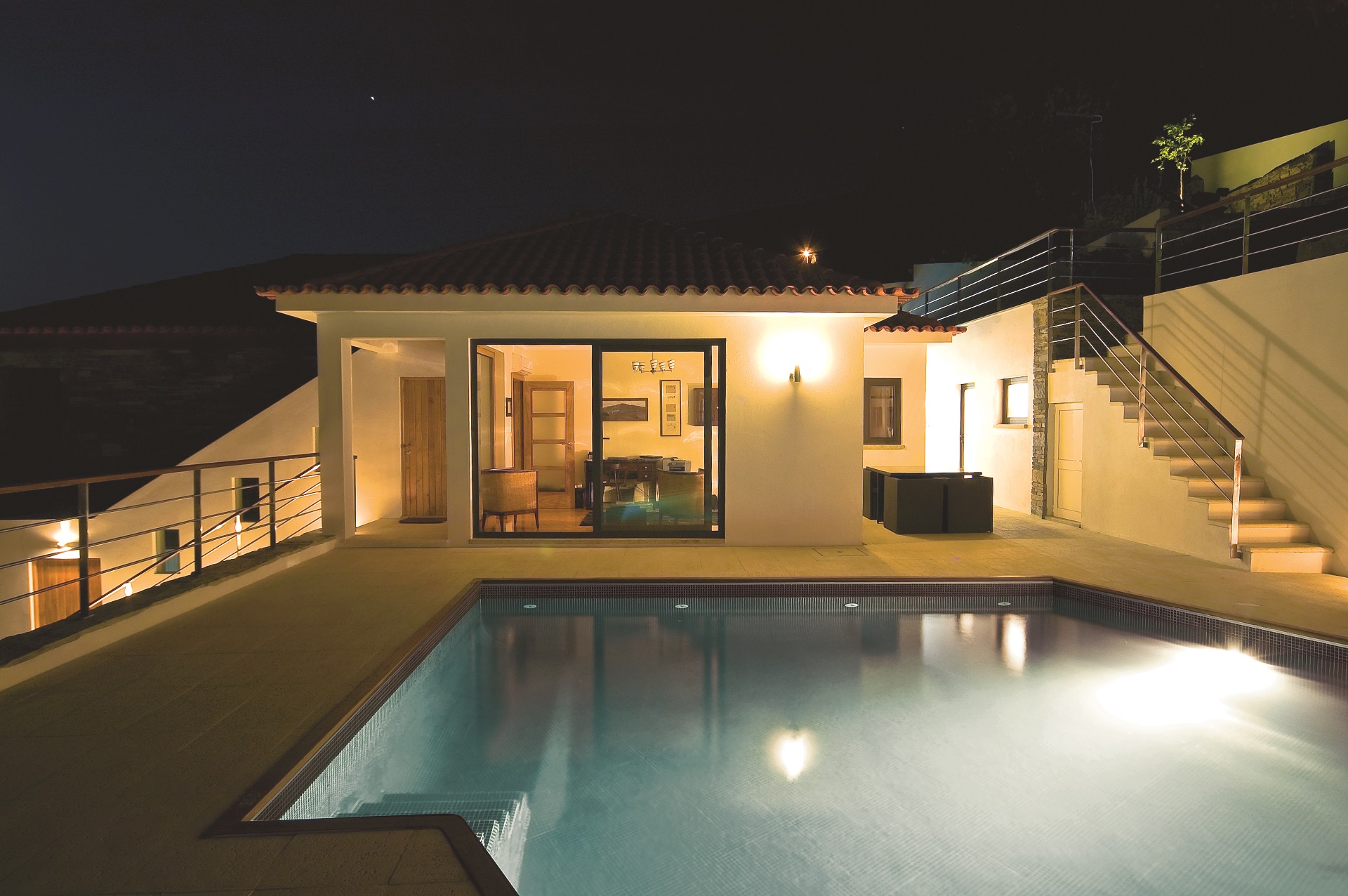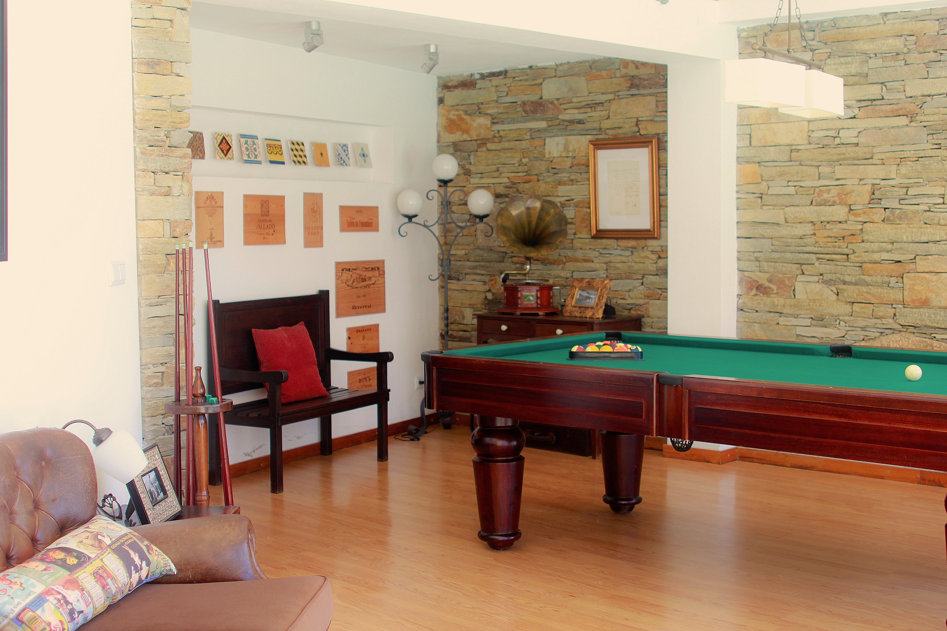 Características principais: piso térreo: plano aberto sala de estar / jantar, cozinha, casa de banho; 1º andar: 3 quartos com casa de banho privada, varanda com vista para o vale, sala de estar, sala de jogos com mesa de snooker; exterior: piscina, terraços, área de churrasco, lavandaria, Wc separado, estacionamento dentro da propriedade, ar condicionado, aquecimento, televisão por satélite com 97 canais, leitor de DVD, sistema hi-fi, internet sem fios gratuita, sofá-cama, cama dobrável, berço, toalhas de piscina.