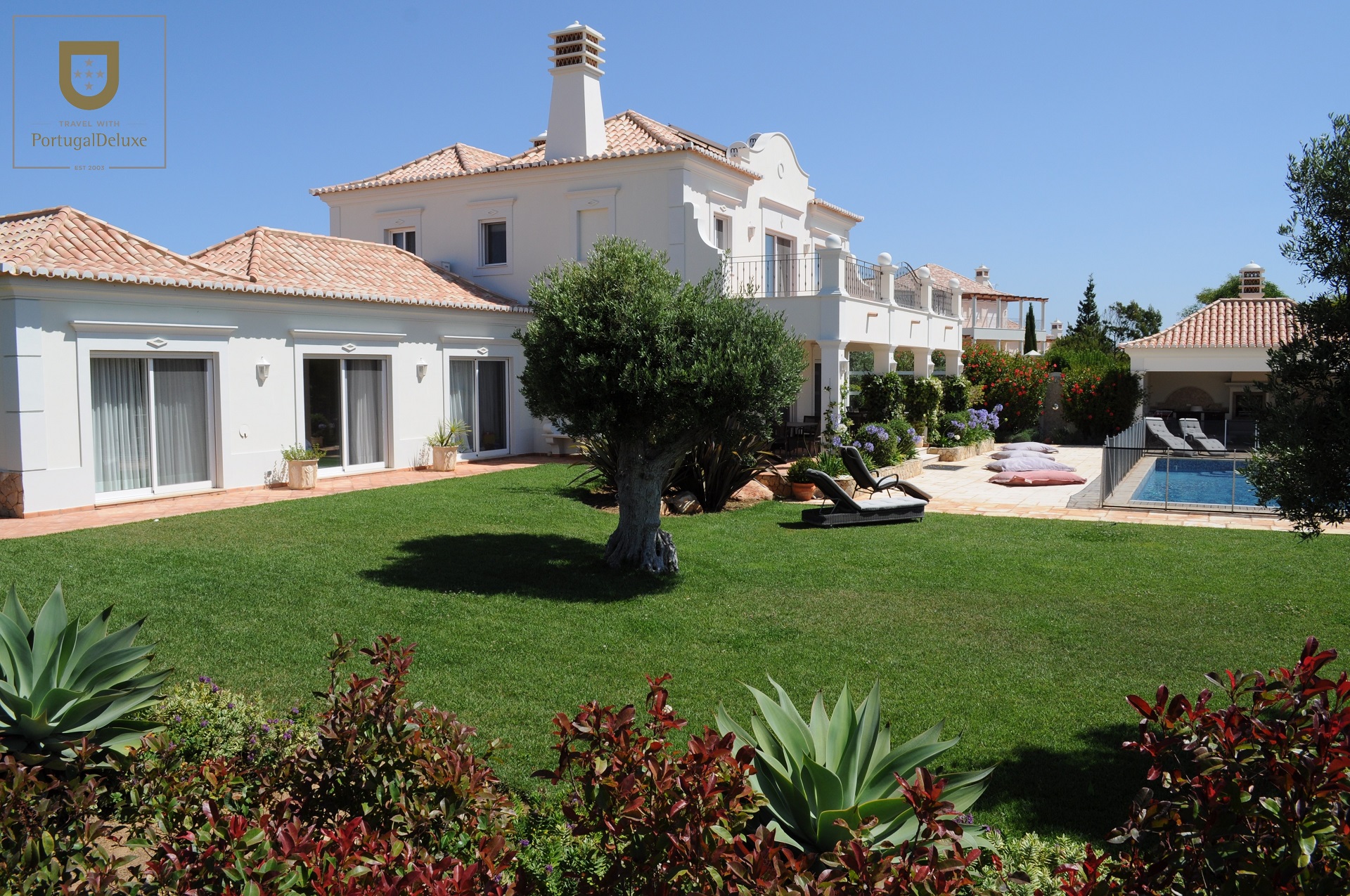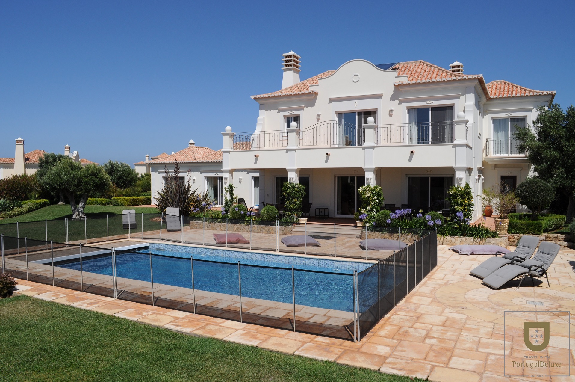 Características principais: 5 quartos; 4 casas de banho; cozinha totalmente equipada; lavandaria; sala de estar e de jantar; barbecue e área de refeições; jardim e piscina privados.