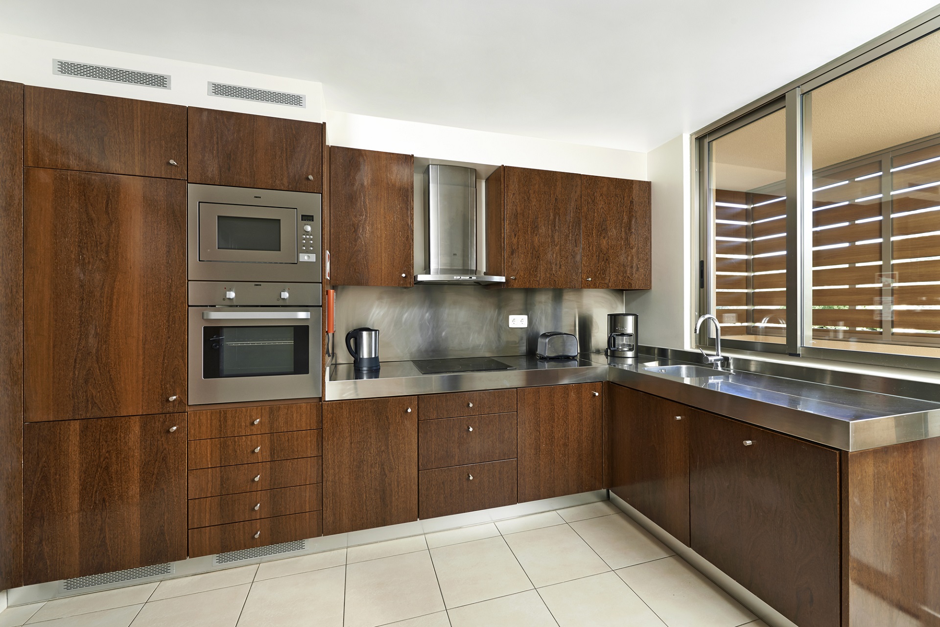 A cozinha totalmente equipada atende a todas as necessidades de self-catering, com fogão, micro-ondas, frigorífico & congelador, lava-louça, máquina de lavar com secadora, torradeira, chaleira, cafeteira Nespresso, ferro e tábua de passar roupas, liquidificador.