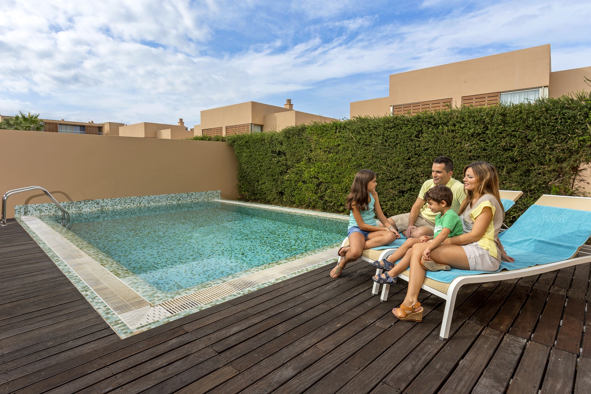 Estas moradias têm espaçosas áreas abertas com acesso a um terraço exterior privado com piscina e área de refeições.