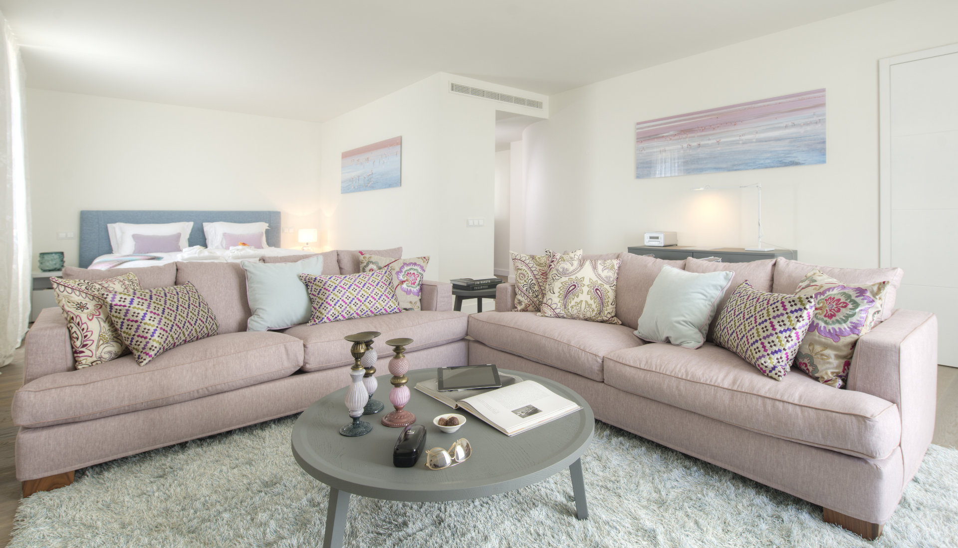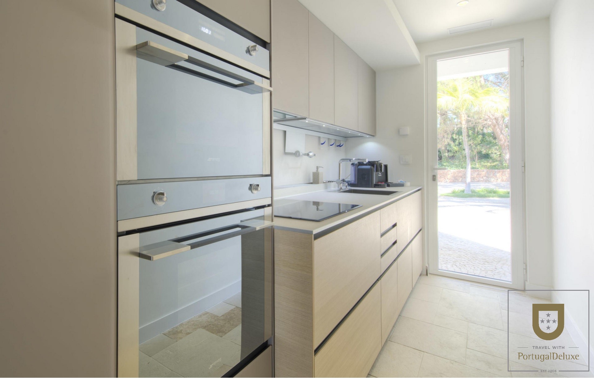 No interior, as cinco suites (três no piso inferior, duas no piso superior) decoradas com uma paleta reduzida de brancos, azuis e verdes, convidam a um relaxamento total. Todas as peças de mobiliário, obras de arte e objetos decorativos foram também cuidadosamente selecionados. Duas kitchenettes (não adequadas para cozinhar), e um ginásio totalmente equipado com sauna e banho turco completam o interior. No exterior, os hóspedes podem refugiar-se em recantos pacíficos, tais como um gazebo de jardim ou um pátio de acesso à piscina banhado pelo sol, antes de se reunirem junto à área de churrasco para um almoço ou jantar ao ar livre.